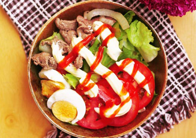 Salad xà lách trộn thịt bò xào